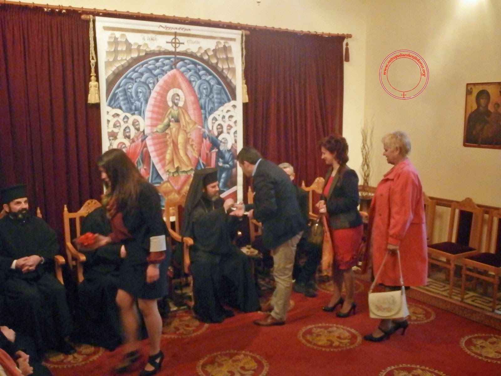 Në mëngjesin e së djelës së Pashkës mjaft besimtarë morën pjesë në Shërbesën e Dashurisë. Pas saj një pjesë e madhe e tyre u kthyen për vizitë në selinë e Mitropolisë së Shenjtë Korçë ku dhe uruan Mitropolitin, Hirësi Joanin me rastin e kësaj feste të madhe. Përveç besimtarëve të thjeshtë uruan dhe mjaft deputet të opozitës dhe të qeverisë ndër të cilët dallonte zv Kryeministri z Niko Peleshi i cili shoqërohej dhe nga Presidenti i Fondit Shqiptaro – Amerikan z Michael Granoff. Por dhe shumë përfaqësues nga shoqata të ndryshme por dhe personalitetet të shkencës ishin prezentë për urime. Ju ofrojmë video dhe fotografi për tu informuar më mirë